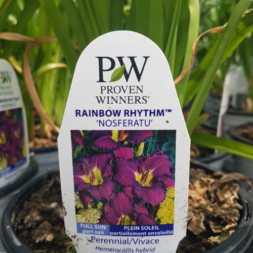 A beautiful and distinctive daylily! Deep purple colored blossoms with an eye-catching yellow centre.