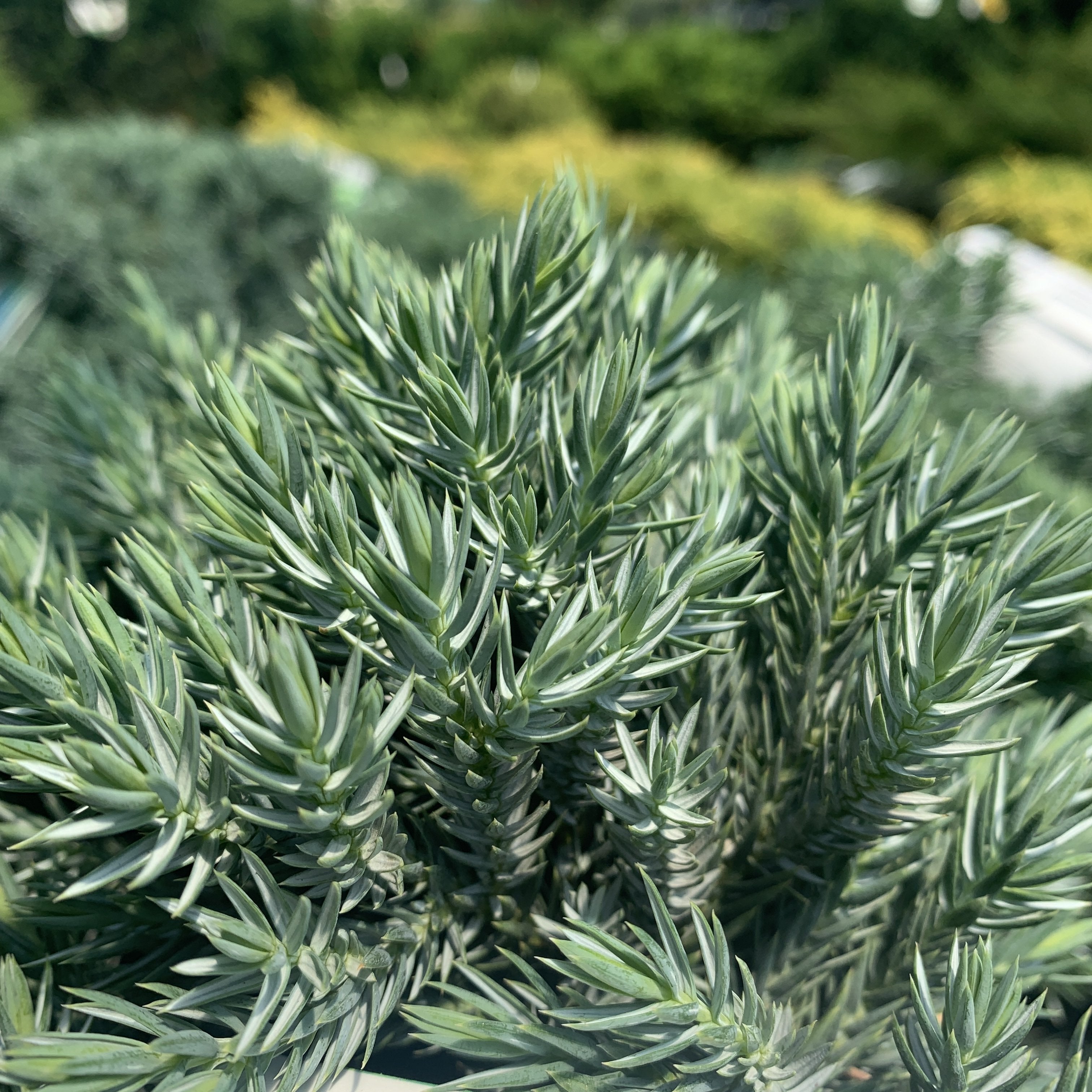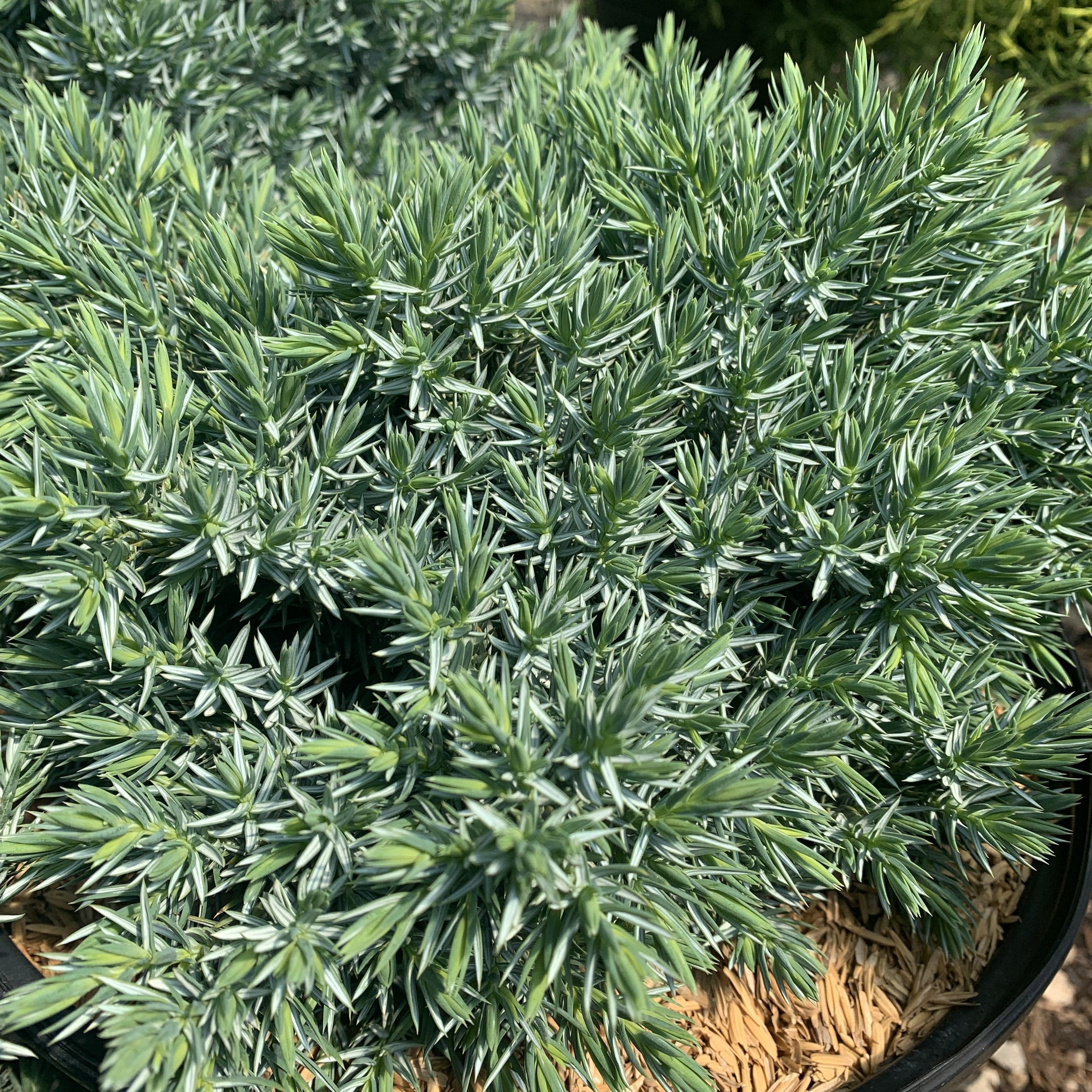 Blue Star Juniper is a dense multi-stemmed evergreen shrub with a more or less rounded form. This is a relatively low maintenance shrub, and is best pruned in late winter once the threat of extreme cold has passed. 'Blue Star' juniper is a needled evergreen shrub with silverly-blue, densely-packed foliage. If you take a bird's-eye view of the shrub, you will notice that the clusters of needles atop the tiny stems resemble stars.