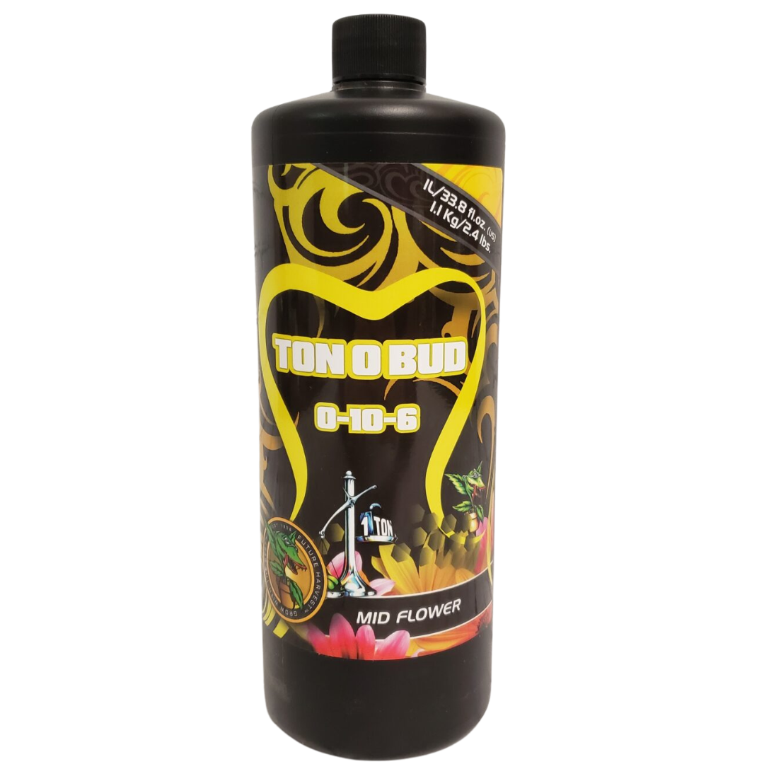 Ton O Bud is a concentrated P-K (phosphorous and potassium) additive designed to pack bulk onto flowers and fruits during the middle stages of a flowering cycle.