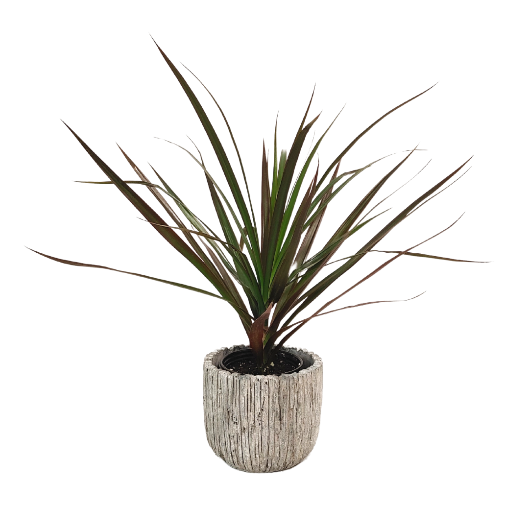 Dracaena Marginata 'Magenta' is commonly known as a 'dragon tree', and is a stiff-leaved plant with deep green and purple sword-like leaves.