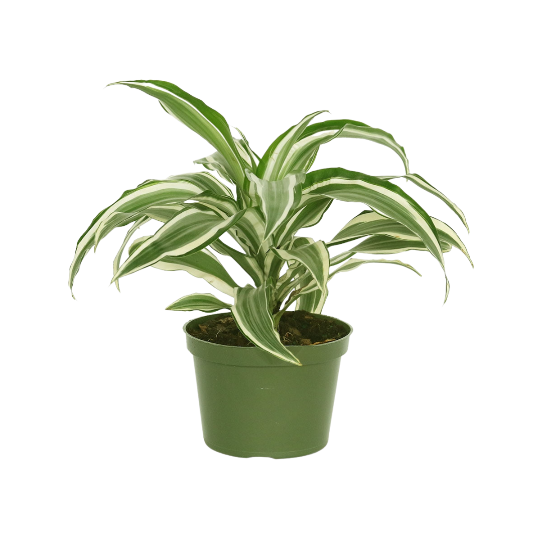 The bushy, upright growth habit around a central trunk, and the grey-green leaves with crisp white or green stripes make this variety another favorite houseplant. The plant is also referred to as striped dracaena but because many other dracaena varieties also have striped foliage, the common name is misleading. The variegated dracaena is very popular as it's green leaves with yellow outlines give it a hard to miss look!