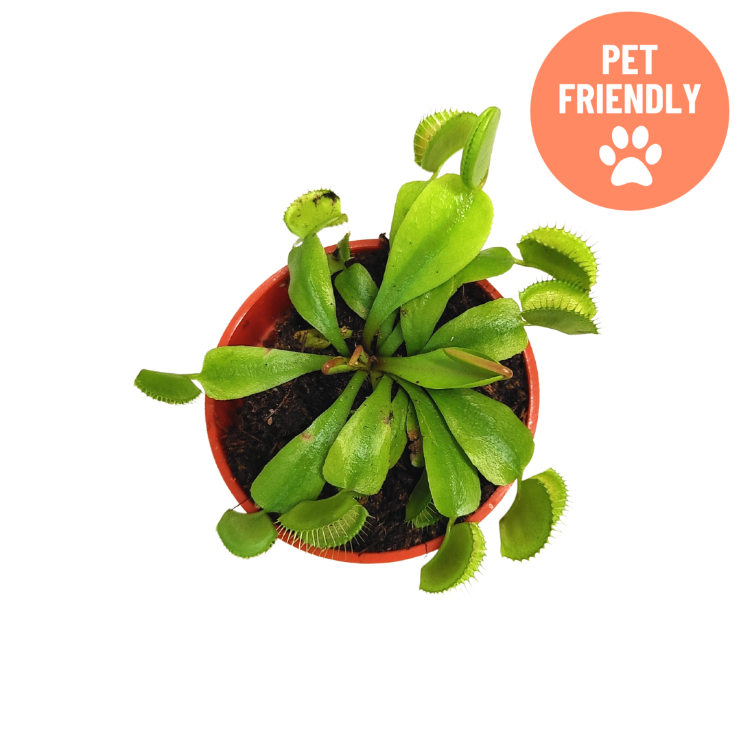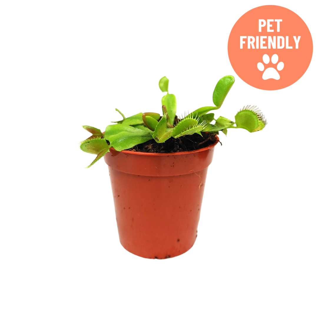 Plant Care: Keep in bright to sunny position, but not in direct sunlight. If your plant's traps don't show a pink interior or if the leaves look long and spindly, provide more light. Water regularly and keep soil moist.