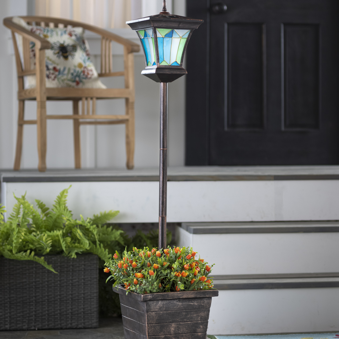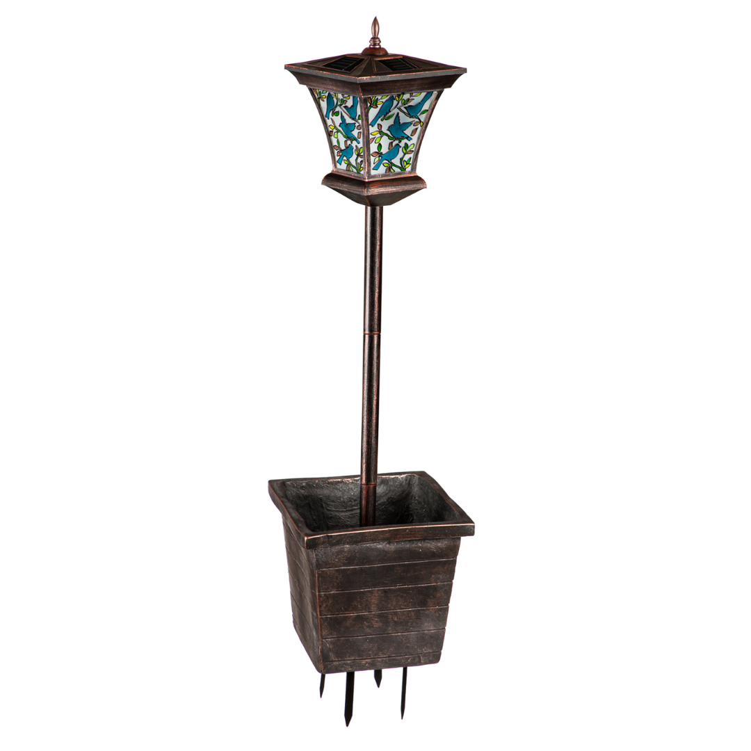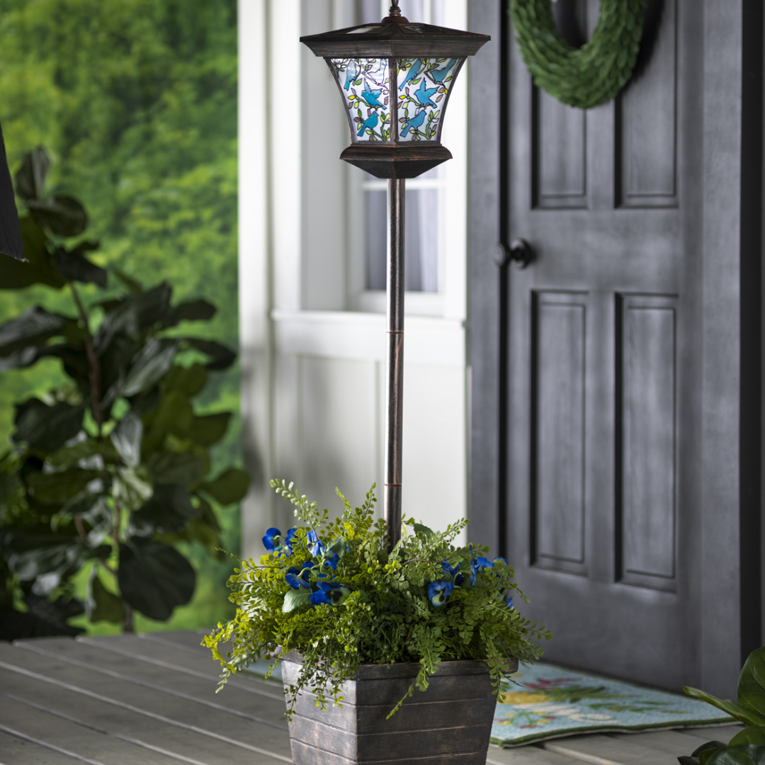 This elegant solar lantern planter is a great way to light up a garden or walkway with a convenient planter to display your favourite flowers!