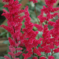 Bright red plumes are presented in upright spires. Blooms in early summer; one of the earliest reds to bloom. Foliage is mahogany red in spring, turning green by summer. One of the most popular reds; a vigorous grower.