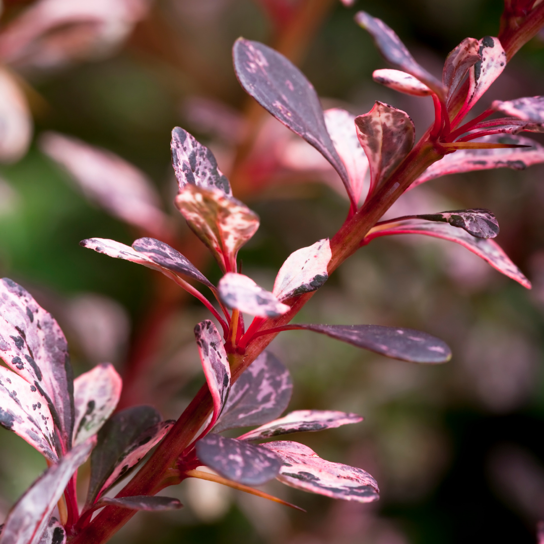 The Rose Glow Barberry is a very versatile shrub. It is a great shrub for beginner gardeners and can be used in a wide variety of ways to meet you landscaping needs. This beautiful shrub has astounding, red colored foliage. A spectacular selection with pink and purple variegated foliage. A knockout for color contrast in the landscape.