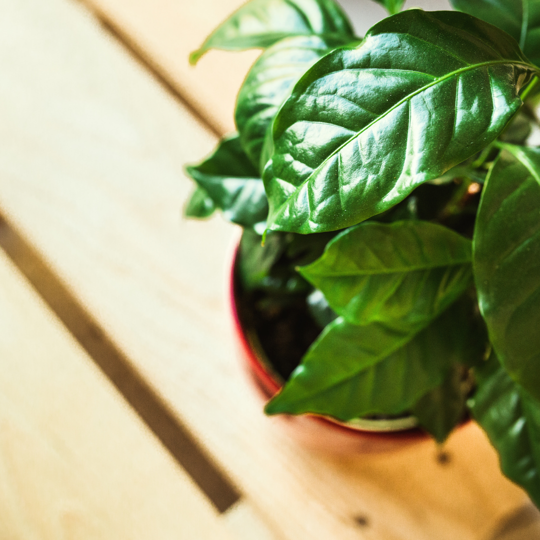 The coffee plant, with its glossy green leaves, a compact growth habit, and ripe coffee cherries that taste sweet, fresh, and with notes of florals, makes a surprisingly good potted indoor plant. Native to Ethiopia, the coffee plant (Coffea arabica) will flower in the spring with small white flowers and then bear half-inch berries that gradually darken from green to blackish pods. Each of these fruits contains two seeds, which eventually become the coffee beans you use to brew coffee.