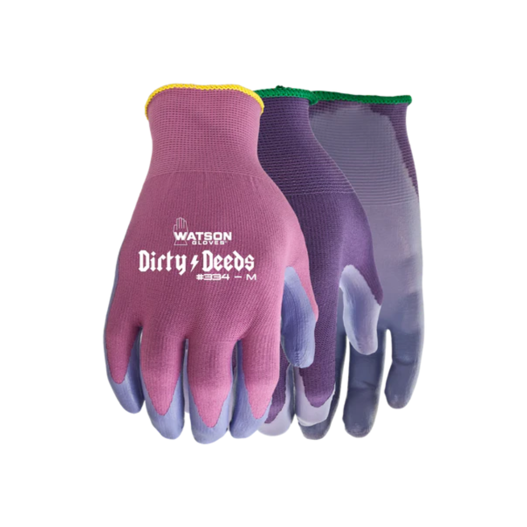 Introducing Dirty Deeds Women's Gloves, the perfect blend of functionality and style for gardening enthusiasts. Crafted with a nitrile-coated palm, these gloves offer exceptional grip and durability for handling various tasks in the garden. The seamless knit and nylon shell provide superior comfort and flexibility, allowing for effortless movement while tending to plants. Designed specifically for women's hands, these gloves offer a snug fit, ensuring maximum dexterity and control. Whether you're planting, pruning, or weeding, Dirty Deeds Women's Gloves are your go-to companion for a seamless gardening experience.