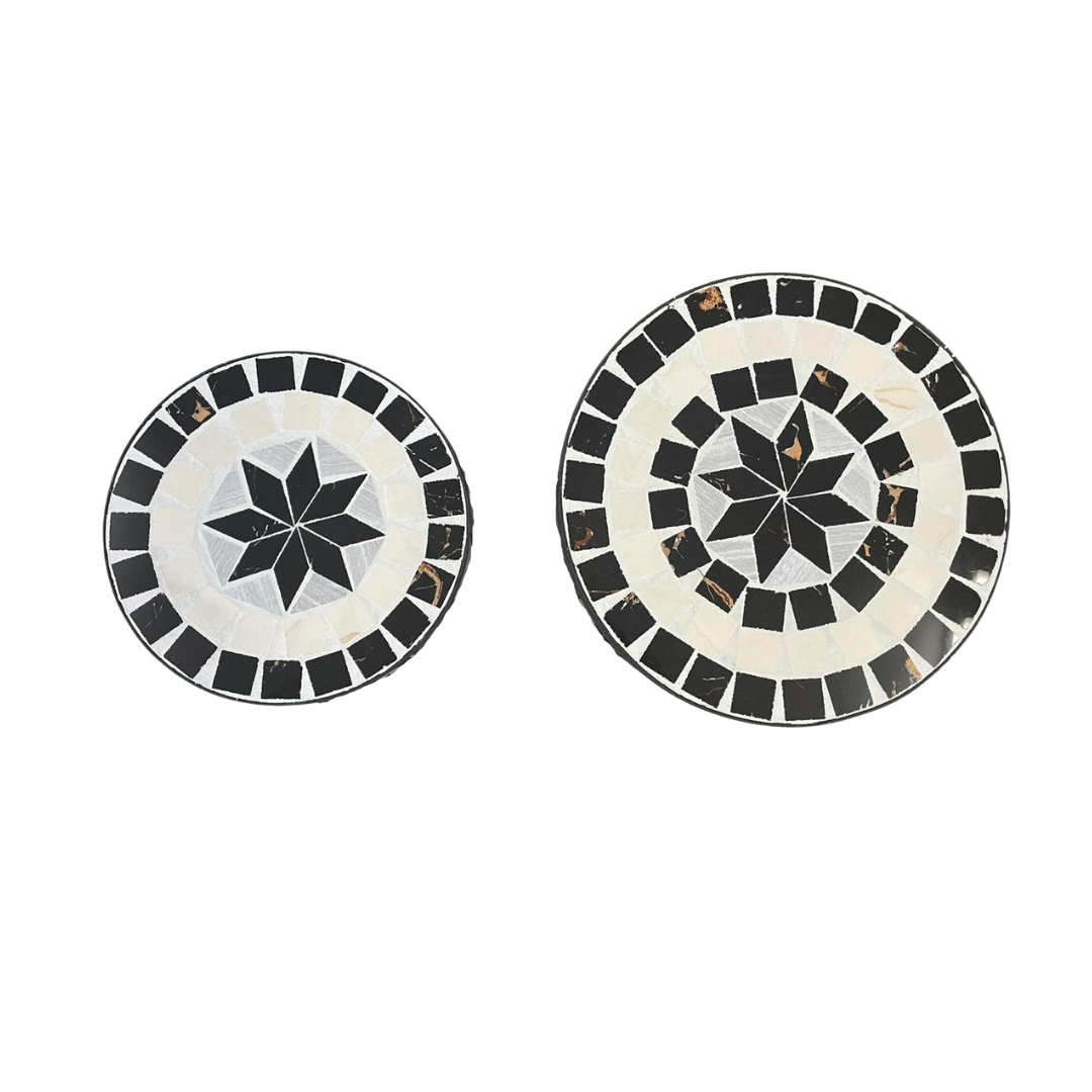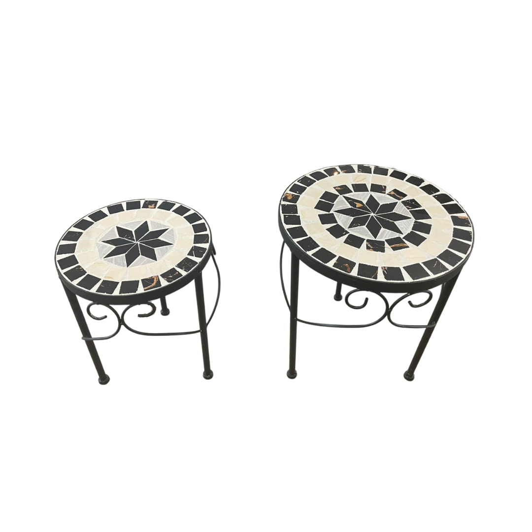 These mosaic plant stands are a great addition to any space; perfect size and height for displaying your plants! Comes in two sizes and a variety of styles.