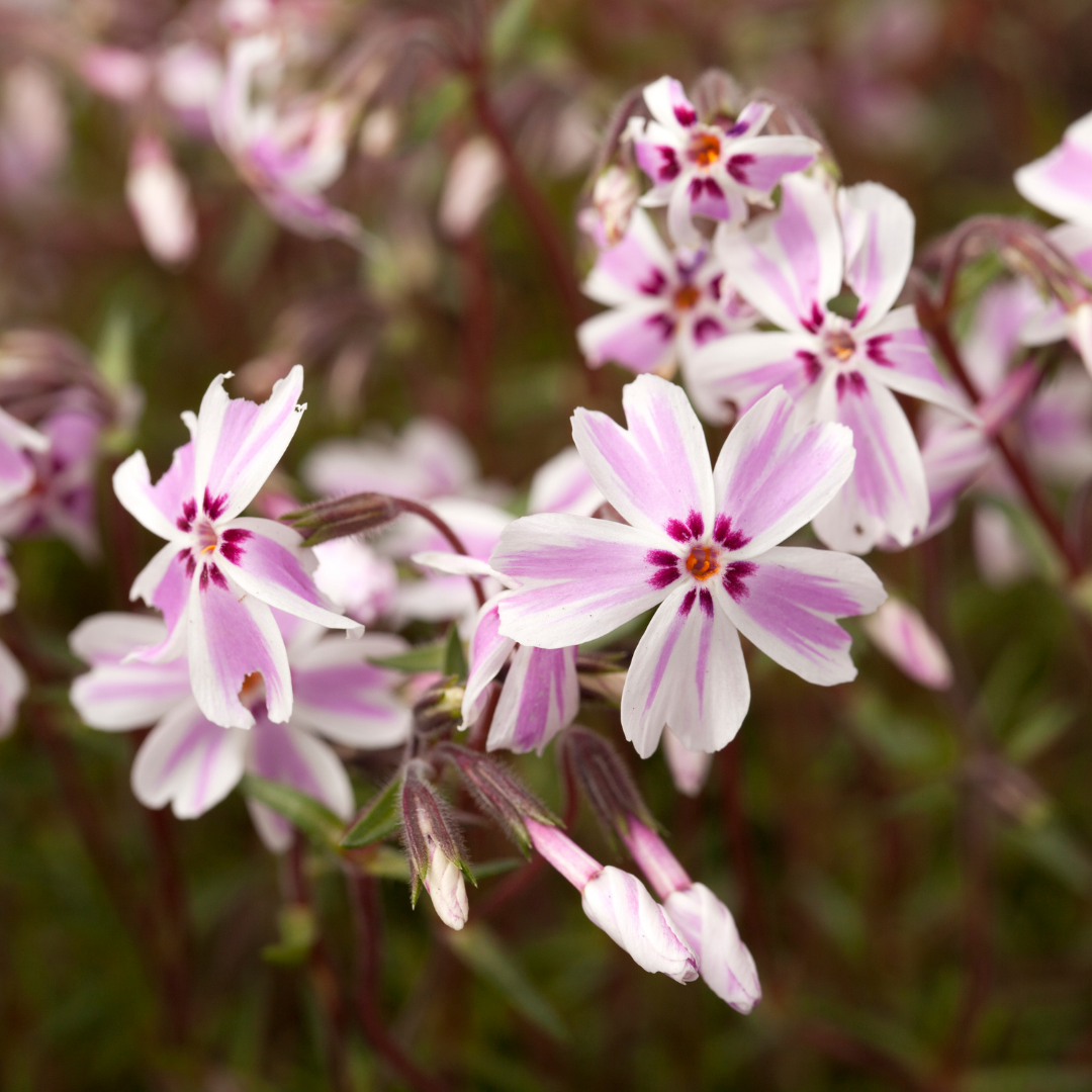 Masses of tiny white flowers with a pink mid-stripe on each petal cover this ground-hugging bloom. Spreads easily on slopes, in rock gardens, along pathways or borders.