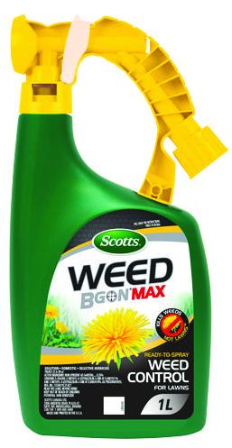 Make weed control easy with Scotts® Weed B Gon® MAX Ready-to-Spray Weed Control for Lawns. Just attach this ready-to-spray bottle to an ordinary garden hose and spray weeds until thoroughly wetted. Within several hours of application, you’ll see it start to work on a range of common lawn weeds, including dandelion, white clover, and creeping buttercup. Scotts® Weed B Gon® MAX Ready-to-Spray Weed Control for Lawns is formulated with 2% iron, so it KILLS WEEDS, NOT LAWNS™. Spray your entire lawn or use as a spot treatment on pop-up weeds.
