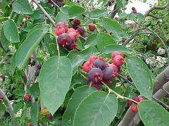 Serviceberry Shrub is a small, deciduous, usually multi-trunked understory tree or tall shrub which is native to thickets, open woods, sheltered slopes and wood margins. Emerging round leaves are greyish to medium green for the summer, and then brilliant yellow to red for the fall. White flowers are followed by red to purplish-black edible fruit.