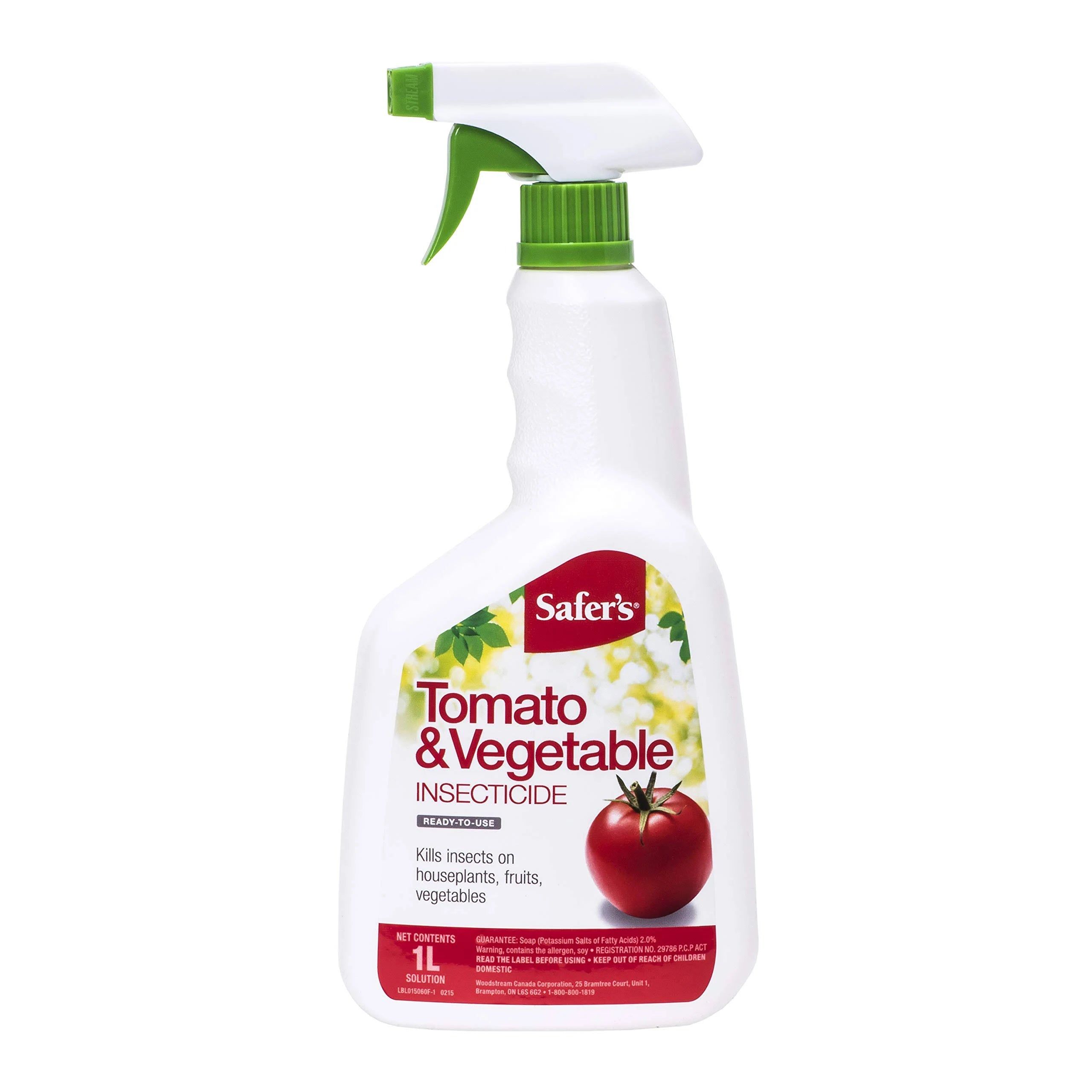 Safer's Tomato & Vegetable Insect Killer utilizes the power of potassium salts of fatty acids (insecticidal soap).  Unlike traditional synthetic chemicals, it breaks down into its natural elements, leaving no residual impact on the environment. One application lasts up to 10 days, and the product can be applied up until the day of harvest.